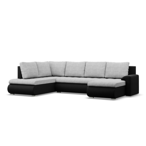 Greensite Tokio U sarokkanapé, 3 ágyneműtartóval, fonott + műbőr, baloldali, szürke - fekete