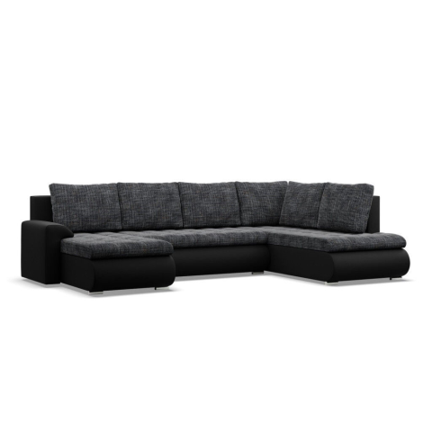 1 kép Greensite Tokio U sarokkanapé, 3 ágyneműtartóval, fonott + műbőr, jobboldali, szürke - fekete