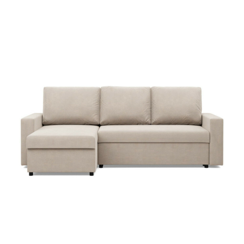 1 kép Greensite Zeus sarokkanapé, 2 ágyneműtartóval, egyenes kartámasz, bársony, univerzális oldal, hab töltet, bézs