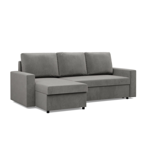 1 kép Greensite Zeus sarokkanapé, 2 ágyneműtartóval, egyenes kartámasz, bársony, univerzális oldal, hab töltet, világosszürke