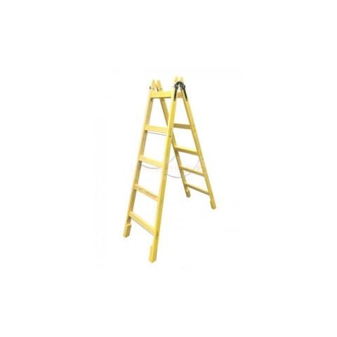 Terhelhetőség: 150kg Anyag: fa Fokok száma: 2x5 TÜV minősítés sárga szín felületkezelt vasalat vödörakasztó csomózott lánc a létraszárak között alul dupla láb minden fok erősített 5 fokos Magasság : 187cm Szélesség : 60cm Vastagság: 12cm