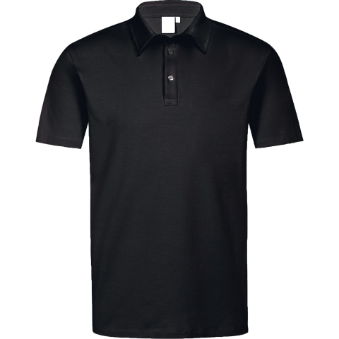 Fekete férfi GREIFF poló Kent-gallérral, rövid ujjú. Kent-gallér, gombolós rész 3 gombbal és a gallér a póló fő anyagából készült. Anyaga: 93 % pamut, 7 % elasztán, 205 g/m². Férfiaknak.
