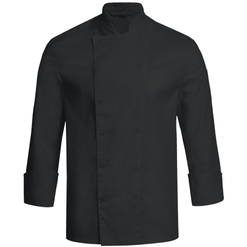 Fekete GREIFF szakácskabát hosszú ujjakkal és rejtett gombokkal. Regular Fit szabású. Anyaga: 65% poliészter, 35% pamut, 210 g/m². Szellőzőnyílások és karzseb. Alkalmas férfiak és nők számára.