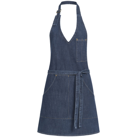GREIFF kék farmer kötény zsebekkel, állítható nyakpánttal. 98 % pamutból és 2 % elasztánból készült, 310 g/m². Méretek: szélesség 700 mm, hosszúság 650 mm. Egyenként csomagolt.