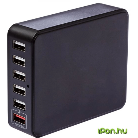 6db USB porttal rendelkező töltőállomás. - Bemenet: AC 100–240V 50-60Hz - Kimenet: 6x 5V (7A max.)