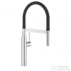 Egylyukas kivitel GROHE StarLight króm felület GROHE SilkMove 28 mm-es kerámiabetét gyöngyöztető beépített hőmérséklet-határolóval profi zuhanyfejjel rugalmas, higiénikus GROHFlexx kitchen santoprén tömlővel váltógomb: normál kifolyás / SpeedClean zuhany