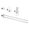 anyag: üveg / fém az alábbiakból áll: szappanadagoló, tartókonzollal (40 756 001) kristálypohár, tartókonzollal (40 755 001) dupla törölközőtartó (40 624 001) Fürdőköntös akaszó (40 511 001) rejtett rögzítés GROHE StarLight felületkezelés