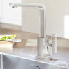 magas kifolyó Egylyukas kivitel GROHE StarLight felületkezelés GROHE SilkMove 28 mm-es kerámiabetét gyöngyöztető elfordítható öntött kifolyóval 360°-ban körbe fordítható flexibilis csatlakozótömlők gyorsszerelő rendszer minimális kifolyási nyomás 1,0 bar