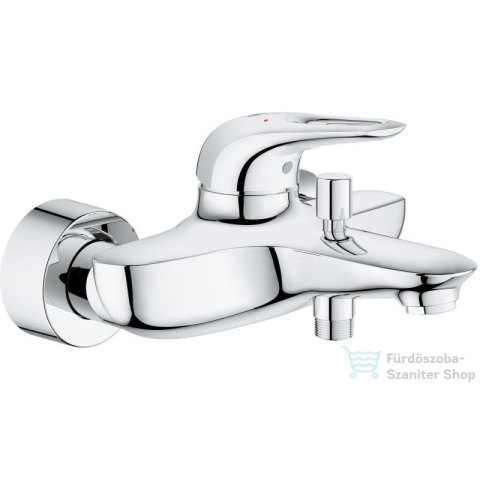 Grohe EUROSTYLE egykaros kádtöltő csaptelep, 1/2, króm 33591003 hurkos fém fogantyú GROHE SilkMove 35 mm-es kerámiabetét hőmérséklet- és mennyiségszabályzó GROHE StarLight króm felület automatikus váltószelep: kád/zuhany gyöngyöztető beépített visszafoly