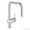 U-kifolyó Egylyukas kivitel GROHE StarLight króm felület GROHE SilkMove 46 mm-es kerámiabetét GROHE EasyDock garantálja az egyszerű visszahúzódást és a sima dokkolást vissza a kiindulási helyzetbe kihúzható-, kétfunkciós zuhanyfej váltógomb: normál kifol