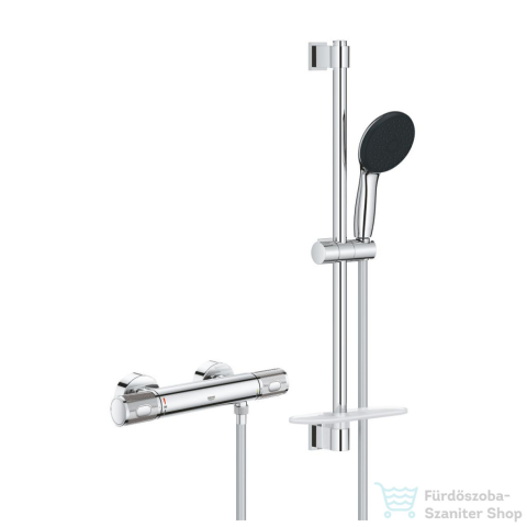 Precision Feel termosztátos zuhanykeverő 1/2 (34790) 3 funkciós kézizuhany Vitalio Start 110 shower rail set, 600 mm (26032) Vitalio Universal tray for shower rail (27725001) A zuhanyrúd rögzíthető csavarokkal és tiplikkel,vagy ragasztható (GROHE QuickGl