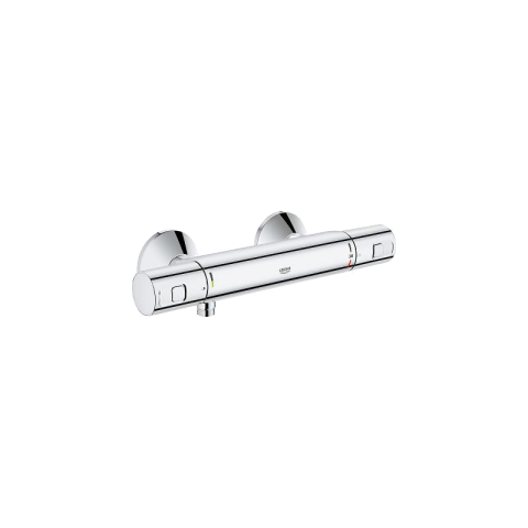 Grohe Precision Start termosztátos zuhanycsaptelep - Grohe StarLight krómfelület - Grohe SafeStop 38°C-nál - zuhanykimenet: 1/2" -- beépített visszafolyás-gátló - S-csatlakozók - fali kivitel - fém rozetták