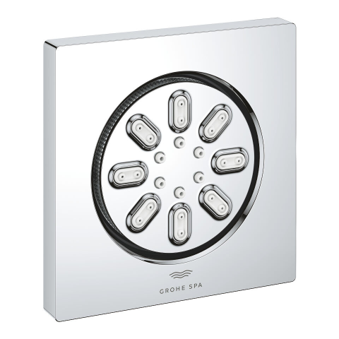 Átfolyó rendszerű vízmelegítőkkel nem működtethető! Vízsugár:PureRain, ActiveJet Tartalmazza a beépítő testet és az összetett tömítést 75x75 mm Forgási tartomány ± 15° forgatható Csatlakozó menet 1/2 Szórási távolság 60 cm GROHE Water Saving 3,3 l/perc át