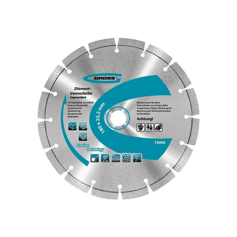 A GROSS 125x22,2x2 mmméretû gyémántkorongja száraz módszerrel (hûtõfolyadék nélkül) szilárd anyagokból: betonból, márványból, salakkövekbõl és gránitból való darabolásra szolgál. A korong 10 mm magas vágószegmense lézerhegesztéssel van összekapcsolva a k