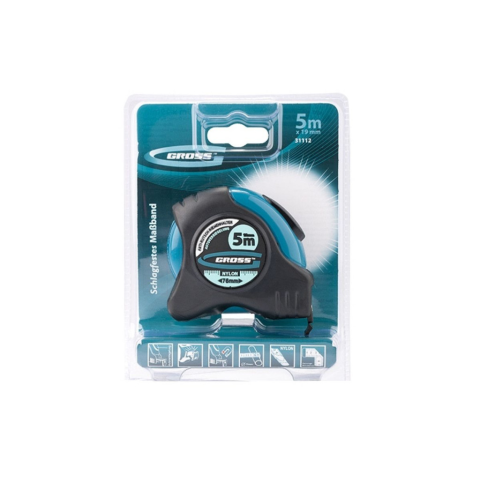 A Gross márka garancia a tökéletességre. A márka származási országa Németország. A Gross termékek mindegyike kiváló alapanyagokból, remek kidolgozással, strapabíró de kényelmes felhasználói élményt nyújtó alkalmazásokra készült.A Gross Schlagfest mérõszalag egy nagy pontosságú mérõmûszer. A mérõszalag kiváló minõségû anyagokból készül, mindkét oldalán található osztás. A felület speciális nylon bevonattal, az ergonómikus test ABS mûanyagból k