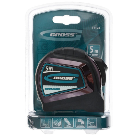 1 kép GROSS 5mx25mm professional mérőszalag kétoldalas
