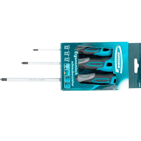 1 kép    GROSS Csavarhúzó készlet, gumírozott nyéllel PH 3 db S2 acél Gross