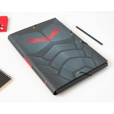Hivatalos Batman termék A Batman A4 Gumis Keményfedeles Füzettartó Mappa egy praktikus és strapabíró mappa, amely ideális a dokumentumok, jegyzetek vagy A4 méretű füzetek rendszerezésére és tárolására.