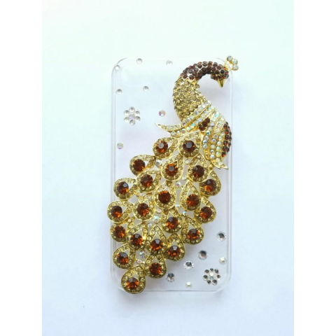 GSMLIVE iPhone 4 4G 4S 4GS barna köves páva mintás kemény hátlap tok tok és táska árgrafikon