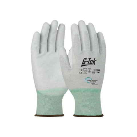 Újrahasznosított anyagból készült antisztatikus kesztyű Ideális választás elektronikai munkákhoz, alkatrész-összeszereléshez, éles kis alkatrészek kezeléséhez és egyéb általános feladatokhoz. Újrahasznosított műanyag palackokból készül, a bélés 90%-ban új