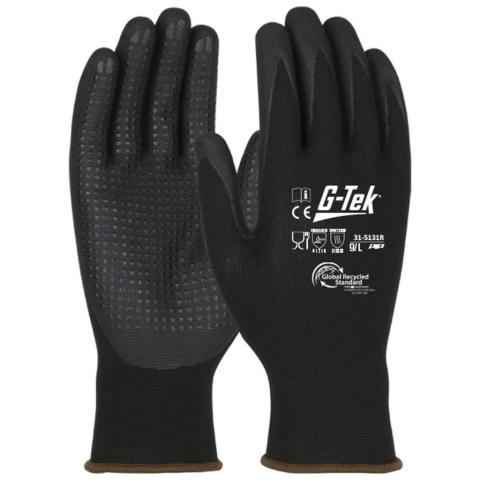 Újrahasznosított anyagokból készült védőesztyű Tökéletes választás nagyobb alkatrészek kezeléséhez, összeszereléshez, gyártási munkákhoz, az elektronikai iparban való használatra, a kertészetben, és az élelmiszeriparban. Az újrahasznosított műanyag palack
