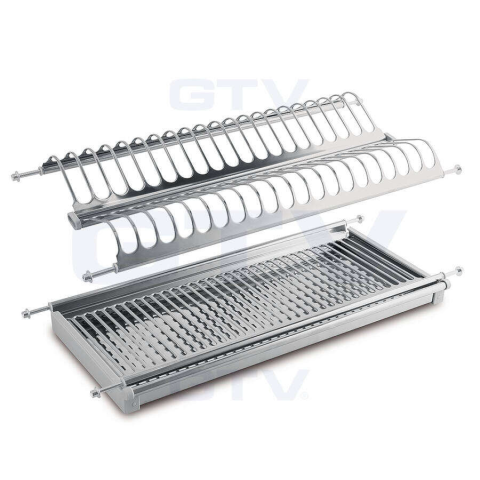 Anyaga: rozsdamentes acél A szett tartalma: • 1 db tányércsepegtető rács • 1 db edénycsepegtető rács • 1 db műanyag, opál vízgyűjtő tálca Rugós, teleszkópos kivitelezésű rögzítés. Korpusz külmérete: 500 mm