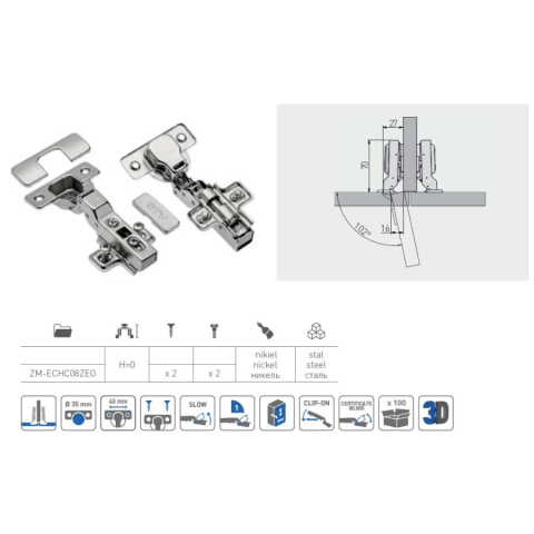 GTV Közézáródó fékes kivetőpánt eurocsavar nélkül bútor termékleírás
