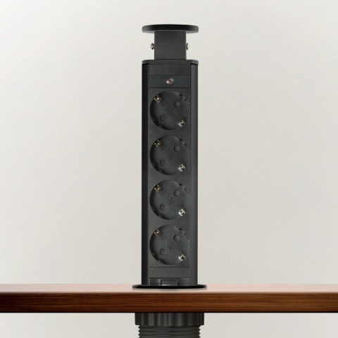 Rejtett elosztó 4-es matt fekete Süllyeszthető elosztó irodai és otthoni felhasználásra, fém házzal, 4 db gyermekvédelemmel ellátott aljzattal. Asztala, bútora legyen mindig elegáns és rendezett, mégis funkcionális. A rejtett elosztó kiváló megoldás le