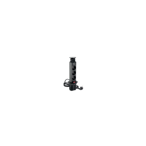 Irodai asztalba süllyeszthető GTV 3-as elosztó, fekete színben: íróasztalba, bútorlapba, konyhabútorba, pultba süllyeszthető hálózati elosztó, földelt konnektorokkal.