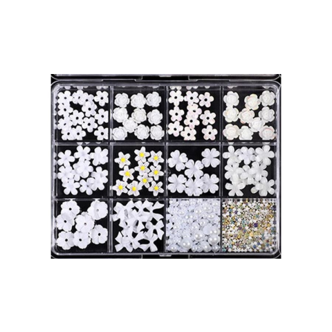 1 kép Guangzhou Merry Tech Körömdísz - 3D díszek 100db - masni, virág, rózsa - Fehér