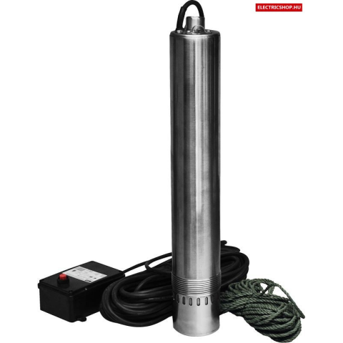 Termékleírás: 20 méternyi kábellel és kapcsolódobozzal ellátott szivattyú. Teljes nemesacél szerkezettel. Többlépcsős centrifuga lapátok biztosítják a nagy tolási nyomást. Csak tiszta víz szivattyúzására használható. Műszaki adatok: