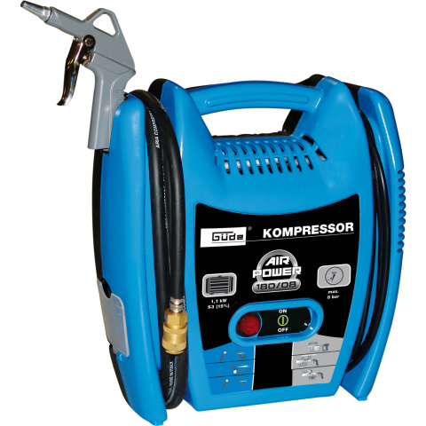 Egyhengeres, olajmentes kompakt kompresszor. Alkalmas elektromos berendezések (Pl. PC) tisztításához, ballonok, tömlők, matracok felfújására. Felszereltség: Hordfül, 2,5 m levegőtömlő gyorscsatlakozóval, rekesz a tartozékoknak, kerékfújó manométerrel, fuvatópisztoly, 3 db fúvóka (tömlőkhöz, kerékpárhoz).- 1100W- 140l/perc- olajmentes- max 8 bar- 315x160x340mm- gyorsatlakozós tömlő- abroncs töltő,fúvópisztoly és adapterek