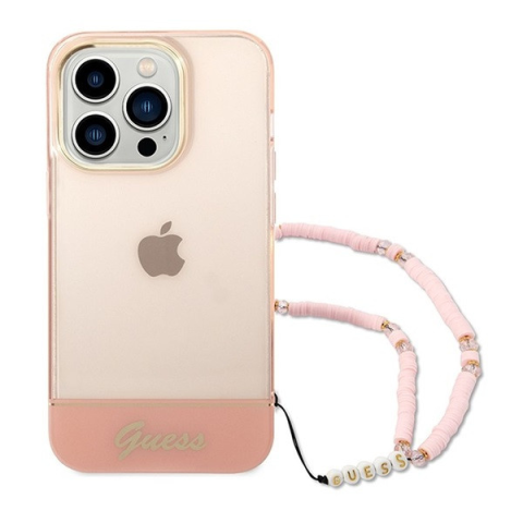 1 kép Guess Camera Outline Translucent Apple iPhone 14 Pro Max hátlap tok szíjjal, rózsaszín