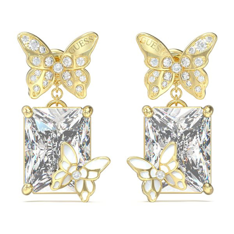 Fülbevaló - női fülbevaló, mérete: 2,5 cm, aranyozott, PVD felületi kezelés, berakás: kristályok, anyaga: rozsdamentes acél Arra készülsz, hogy beszerzel egy pár fülbevalót, amely téged és a környezeted is lenyűgöz? Válaszd a remek GUESS fülbevalót. A kiváló GUESS márkájú fülbevaló az összes nőt tökéletesen megszépíti. Lóg