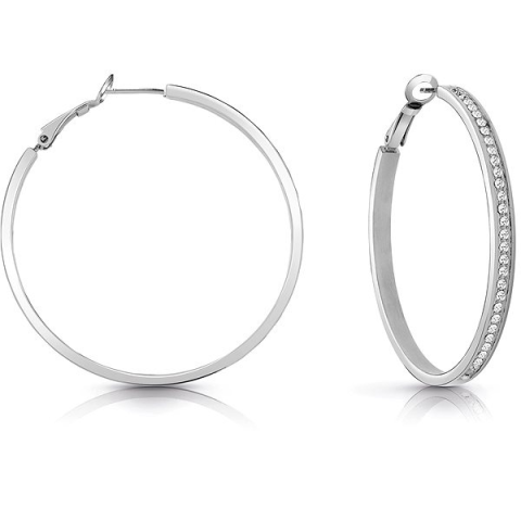 Fülbevaló - női fülbevaló, mérete: 5 cm, ródium bevonatú, PVD felületi kezelés, anyaga: rozsdamentes acél Egy pár fülbevaló beszerzésére készülsz, amely kiegészíti a megjelenésed? Akkor válaszd a kiváló GUESS fülbevalót. A remek GUESS márkájú fülbevaló minden nőt lenyűgöz. Kör alakja szinte minden archoz