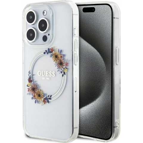 1 kép Guess Eredeti Tok GUESS GUHMP15LHFWFCT iPhone 15 Pro Magsafe / Virágkoszorú / Átlátszó (GUHMP15LHFWFCT)