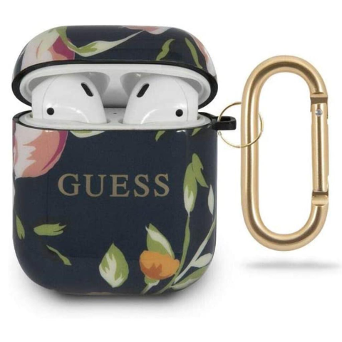 Guess Floral Apple Airpods 1/2 Tok - Fekete/Mintás (GUACA2TPUBKFL03) fülhallgató, fejhallgató tok 1 kép