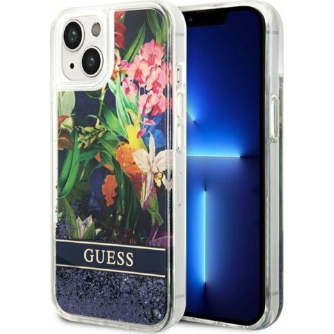 Guess Flower Liquid Glitter Apple iPhone 14 hátlap tok, kék (GUE2062) tok és táska 1 kép