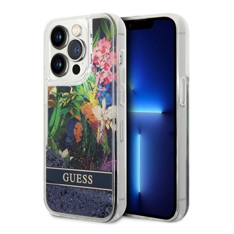 1 kép Guess Flower Liquid Glitter Apple iPhone 14 Pro hátlap tok, kék
