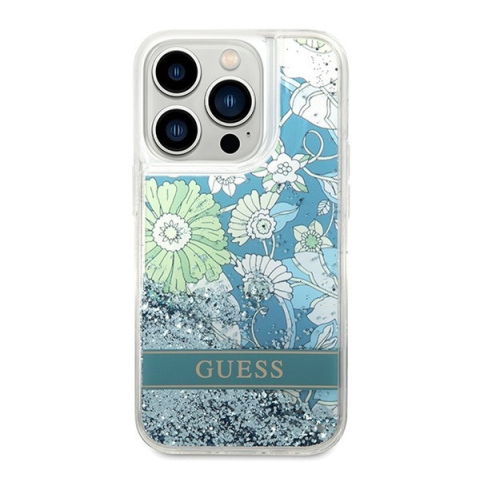1 kép Guess Flower Liquid Glitter Apple iPhone 14 Pro hátlap tok, zöld