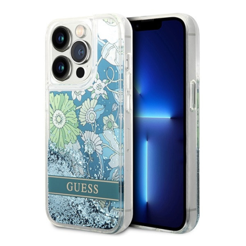 1 kép Guess Flower Liquid Glitter Apple iPhone 14 Pro Max hátlap tok, zöld