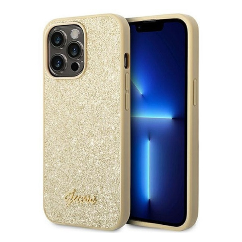 1 kép Guess Glitter Flakes Metal Logo Apple iPhone 14 Pro hátlap tok, arany