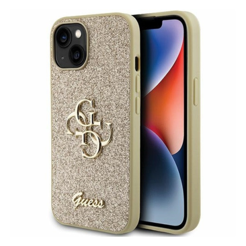 Guess Glitter Script Big 4G Apple iPhone 15 hátlap tok, arany