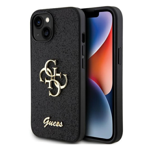1 kép Guess Glitter Script Big 4G Apple iPhone 15 hátlap tok, fekete