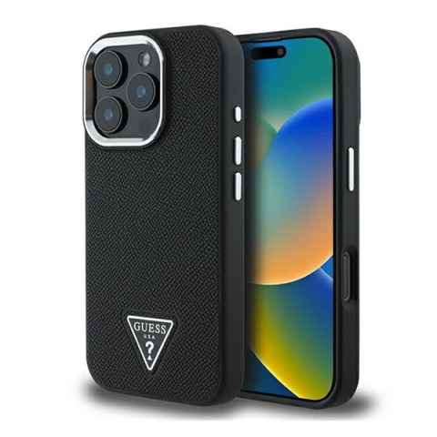1 kép Guess Grained Triangle iPhone 16 Pro MagSafe kemény hátlap tok, fekete GUHMP16LPGTSPSK