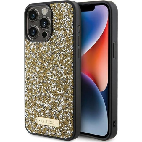 1 kép Guess GUHCP15LPFGSBSD iPhone 15 Pro 6.1" Sárga Keménytok Strasszos Fém Logóval (GUE003116)