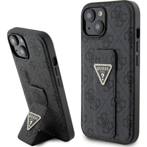 1 kép Guess GUHCP15SPGS4TDK Grip Stand Triangle Strass Tok iPhone 13 / 14 / 15 - Fekete (GUE003371)