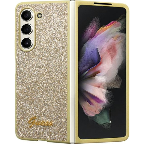 1 kép Guess GUHCZFD5HGGSHD F946 Z Fold5 Arany Keménytok Csillámos Script (GUE2791)