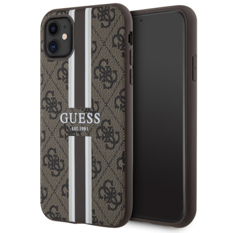 1 kép Guess GUHMN61P4RPSW iPhone 11 / Xr barna keménytok 4G nyomtatott csíkokkal MagSafe
