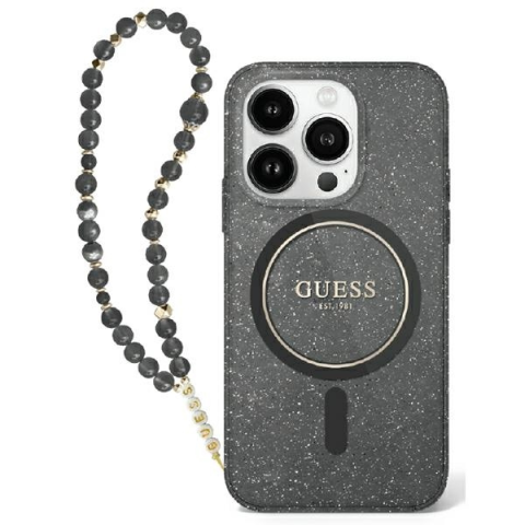 1 kép Guess GUHMP16SHGCRELSK IML Glitter With Pearl Strap MagSafe keménytok iPhone 16 - fekete